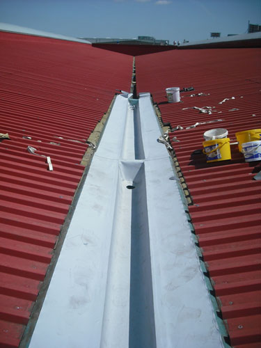 - Instalace hydroizolační fólie Alkorplan do stávajících žlabů.